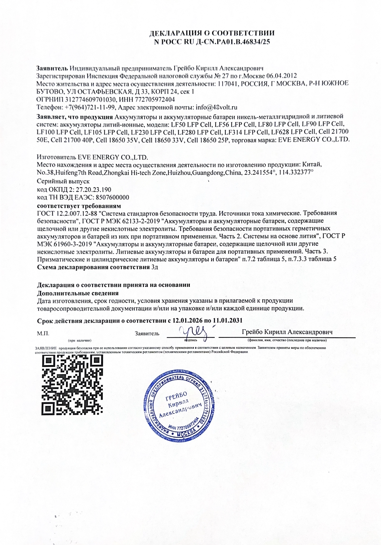 Не упустите возможность приобрести аккумулятор LiFePO4 105Ач от компании 48volt. Звоните по телефону +7(995) 508-48-48 и закажите качественный lifepo4 105ач уже сегодня!